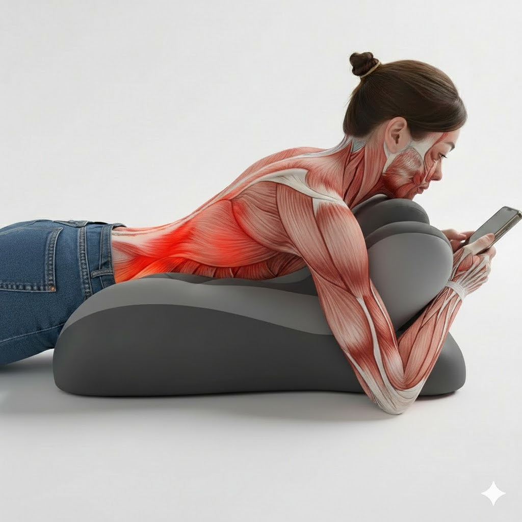Your spine forms a natural S-curve, cervical, thoracic, and lumbar, engineered by evolution to distribute weight and absorb shock. Flat surfaces force this curve to collapse, compressing discs and overworking muscles to compensate. This is why traditional pillows cause pain: they ignore your body's biomechanical design.